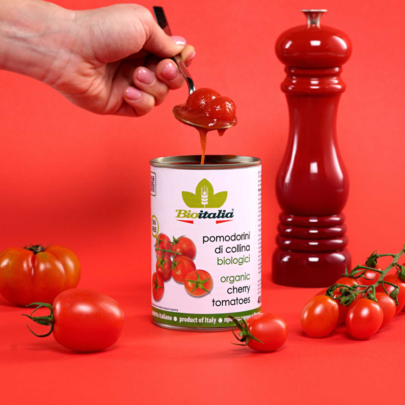 Pomodorini di collina biologici, succo di pomodori biologico.