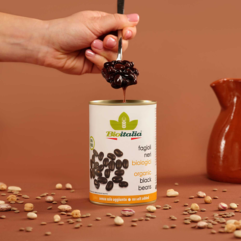 Fagioli neri biologici lessati in acqua. Senza sale aggiunto. È una varietà di fagioli diffusa in tutto il mondo, hanno una consistenza soda e un sapore delicato; per questo motivo i fagioli neri biologici sono adatti a ricette sia tradizionali che più etniche.