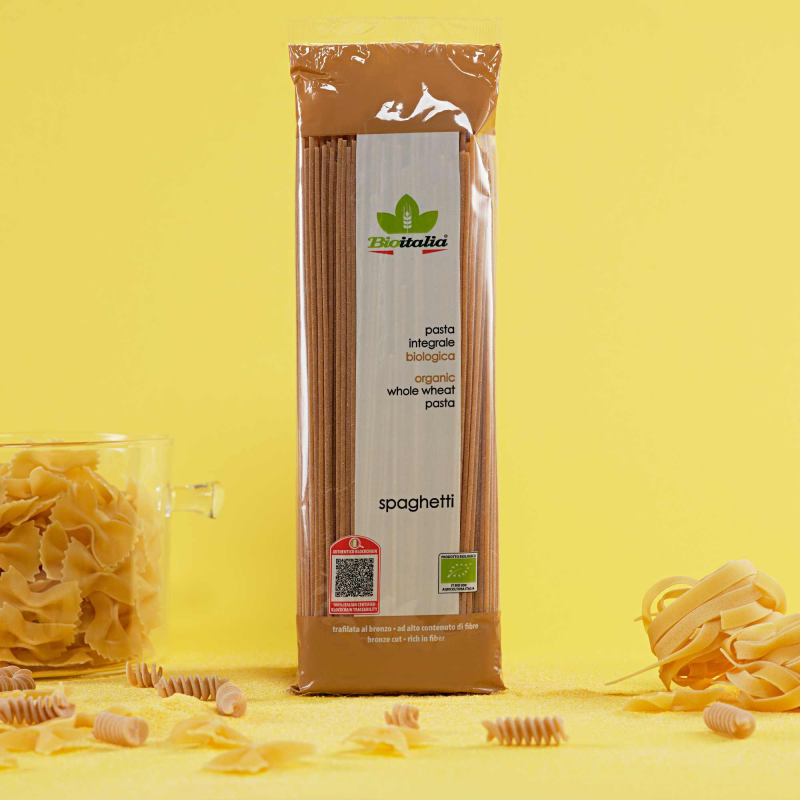 Spaghetti di semola integrale di grano duro biologica da filiera registrata in blockchain.