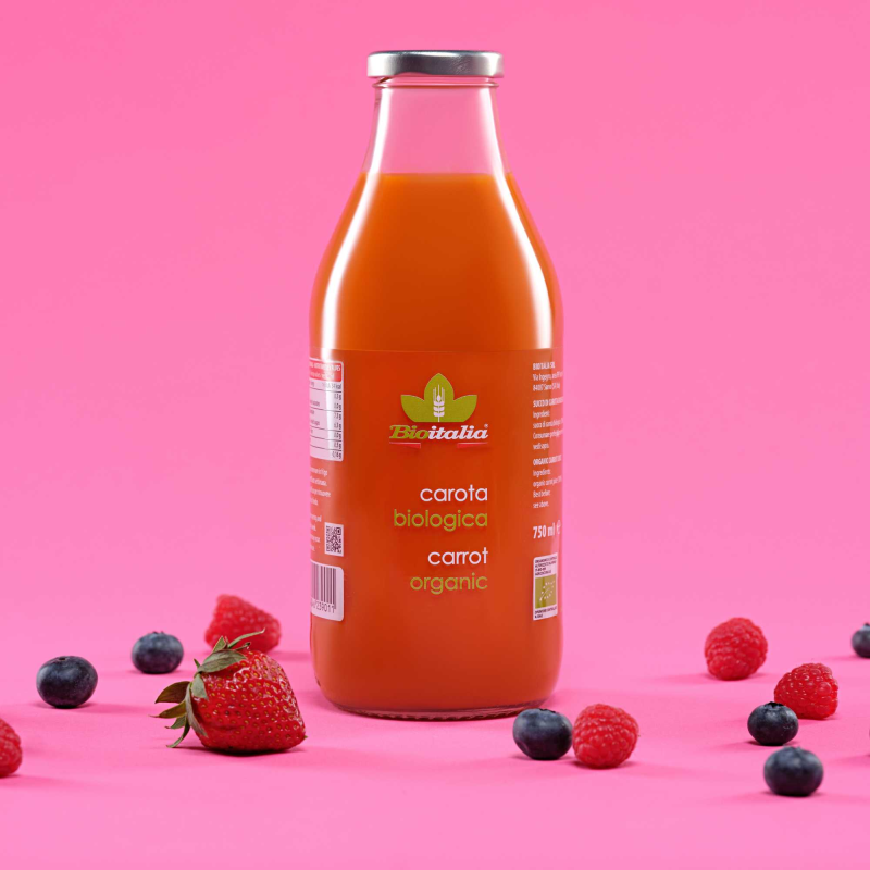 Il nostro Succo di Carota ha un sapore naturale fresco, con l'aroma dolce delle carote, coltivate secondo il metodo biologico. Il succo di carota biologico è ottenuto con il 100% di carote. Non è un succo ricavato dai concentrati ma dalla frutta fresca, non ha additivi o zuccheri raffinati aggiunti.